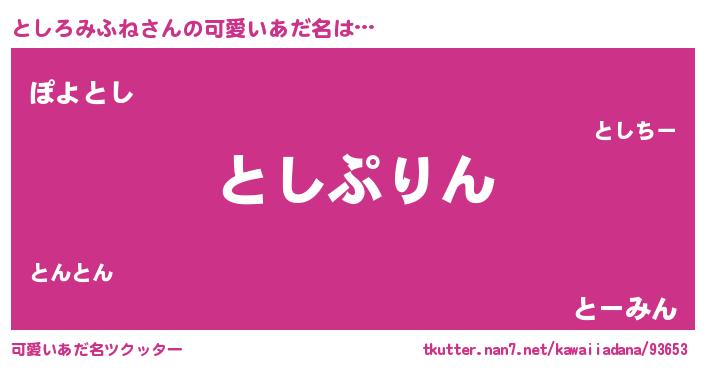 | 男性向けラノベタイトル風あだ名 | 『としろみふね~年齢イコール彼女いない歴の魔法使い~』 |