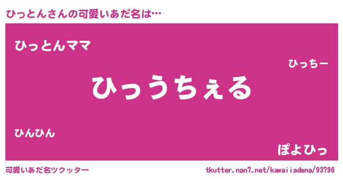 | 男性向けラノベタイトル風あだ名 | 『Re:ひっとんから始める異世界生活』 |