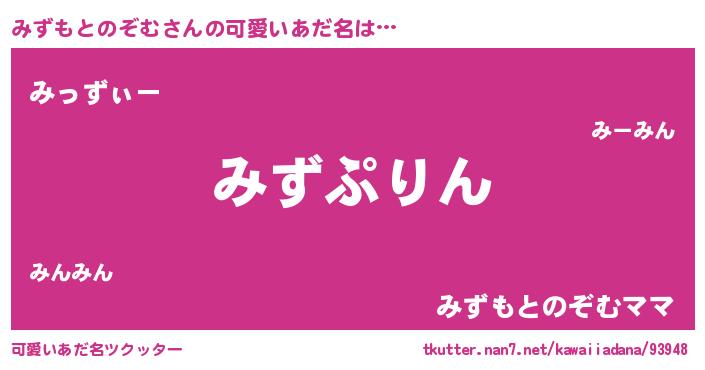 | ポケモン風あだ名 | 『ミズキング』『ヒミズモトノゾム』 |