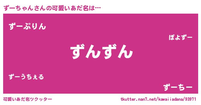 | 意味不明あだ名 | 『ペロリンずーちゃん』『自称ずーちゃん』 |