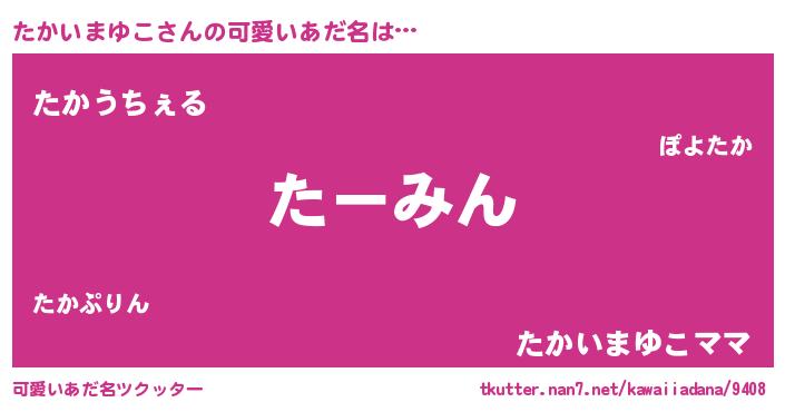 | ヒーロー風カッコイイあだ名 | 『最強戦士タカイマユコ』『仮面タカダー』 |