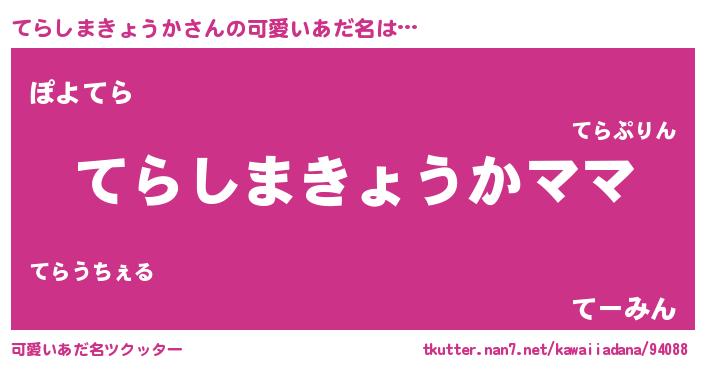 | ヘコむあだ名 | 『てらしまきょうか(遠い目)』『てらふぇ~』 |