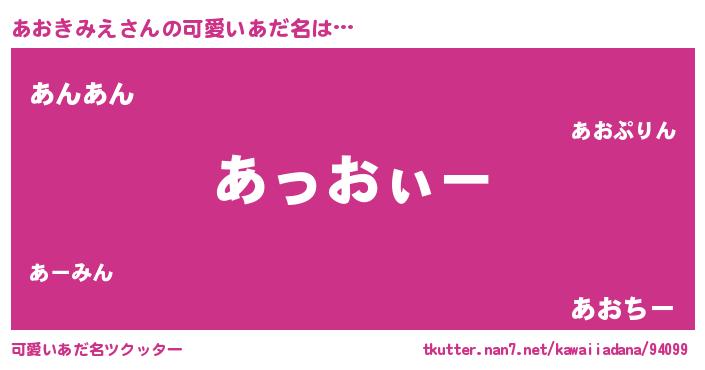 | ポケモン風あだ名 | 『ヒアオキミエ』『アオチュウ』 |