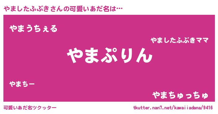 | 男性向けラノベタイトル風あだ名 | 『やましたふぶき~年齢イコール彼女いない歴の魔法使い~』 |