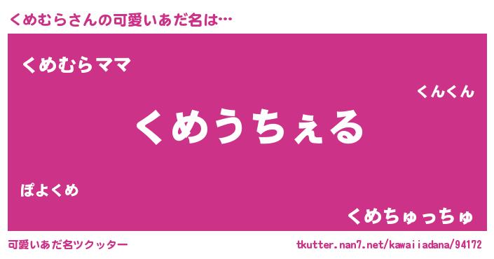 | ヘコむあだ名 | 『くめむら(苦笑)』『くめもー』 |