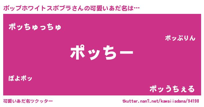 | 意味不明あだ名 | 『ポップホワイトスポブラフォーエバー』 |