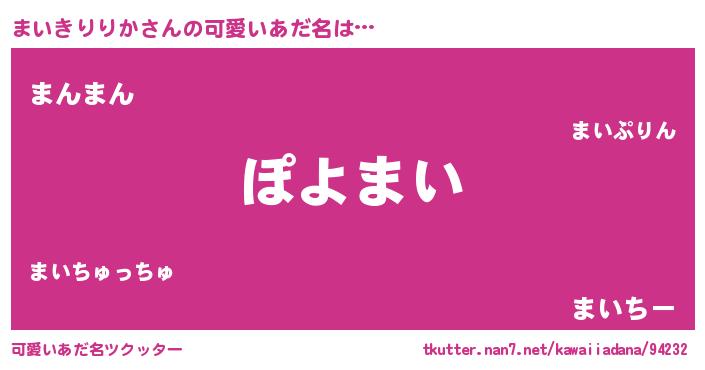 | 恥ずかしいあだ名 | 『プリティーまいきりりか』『まいっちょ』 |