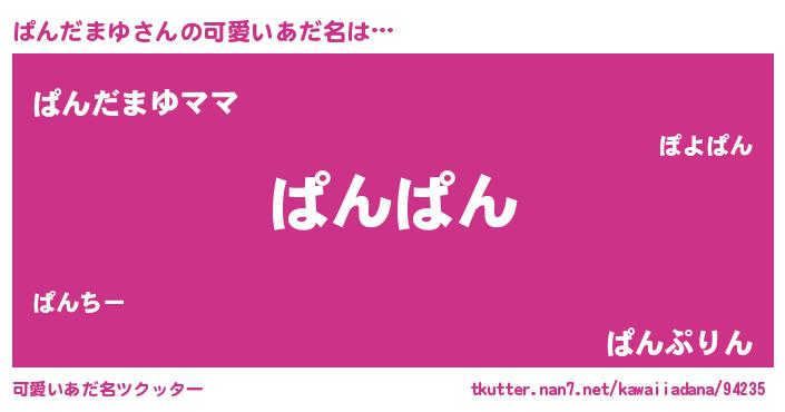 | ヒーロー風カッコイイあだ名 | 『スーパーパンダマユ』『ネオパンダマユ』 |