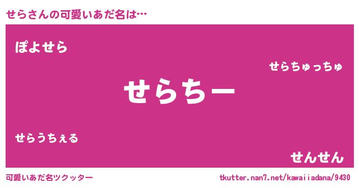 | 恥ずかしいあだ名 | 『せらっちょ』『プリティーせら』 |