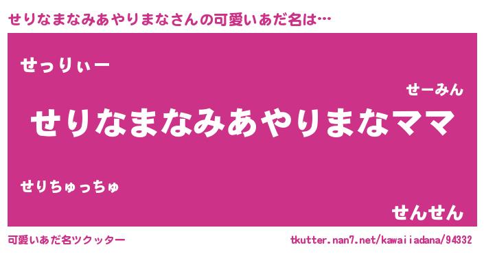 | ヒーロー風カッコイイあだ名 | 『ネオセリナマナミアヤリマナ』 |