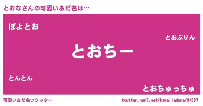 | 意味不明あだ名 | 『とおなフォーエバー』『ペロリンとおな』 |