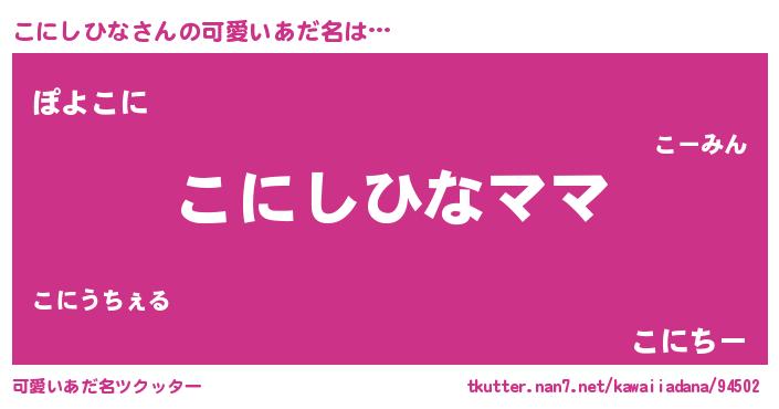 | ヒーロー風カッコイイあだ名 | 『ネオコニシヒナ』『仮面コニダー』 |