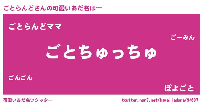 | ヘコむあだ名 | 『ごとらんど(震え声)』『ごとにー』 |