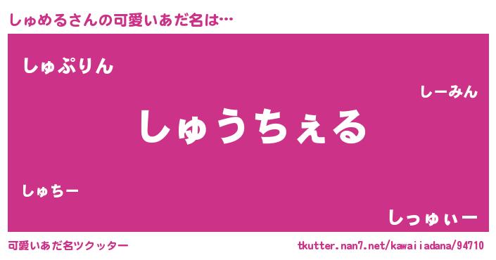 | 意味不明あだ名 | 『自称しゅめる』『めかぶ科しゅめる属』 |