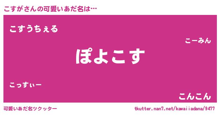 | 意味不明あだ名 | 『住所不定無職こすが(8歳)』『自称こすが』 |