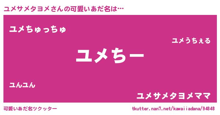 | ポケモン風あだ名 | 『ユメサダネ』『ユックウザ』 |