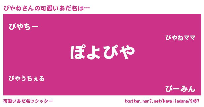 | 男性向けラノベタイトル風あだ名 | 『この素晴らしい世界にびやねを!』 |