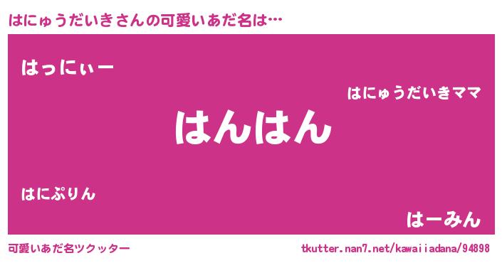 | 恥ずかしいあだ名 | 『プリティーはにゅうだいき』『はにちん』 |