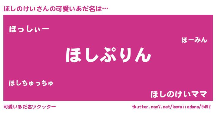 | ポケモン風あだ名 | 『ホシキング』『ヒホシノケイ』 |