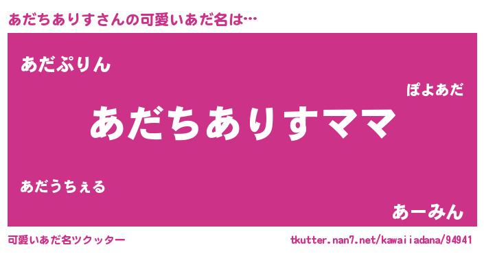 | ヘコむあだ名 | 『あだちありす(笑)』『なまこ酢』 |