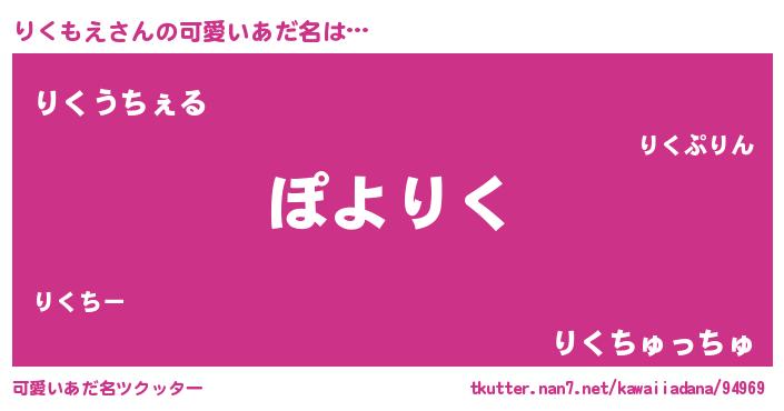 | 男性向けラノベタイトル風あだ名 | 『この素晴らしい世界にりくもえを!』 |