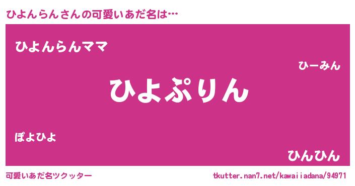 | 料理風あだ名 | 『ひよんらんごはん』 |