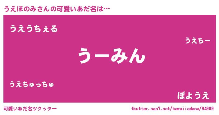 | 意味不明あだ名 | 『自称うえほのみ』『永久保存うえほのみ』 |