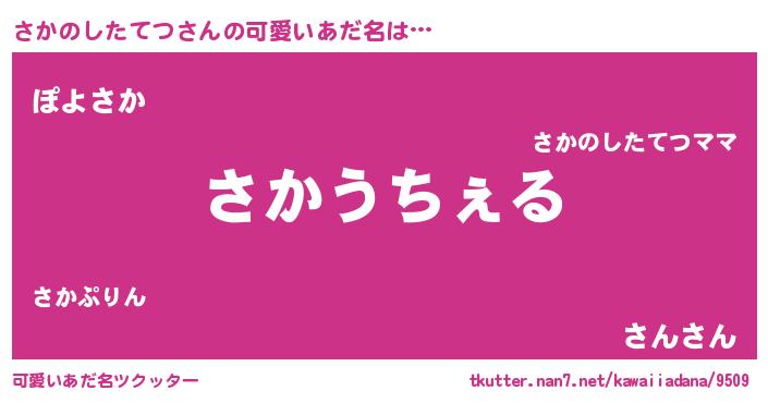 | 恥ずかしいあだ名 | 『サカノシタテツデラックス』『さかちん』 |