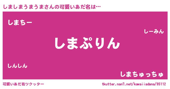 | 男性向けラノベタイトル風あだ名 | 『しましまうまうま~年齢イコール彼女いない歴の魔法使い~』 |