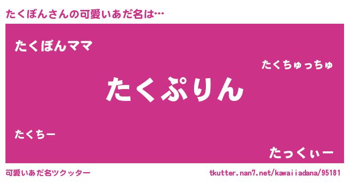 | ヘコむあだ名 | 『たくぼん(遠い目)』『たく太郎』 |