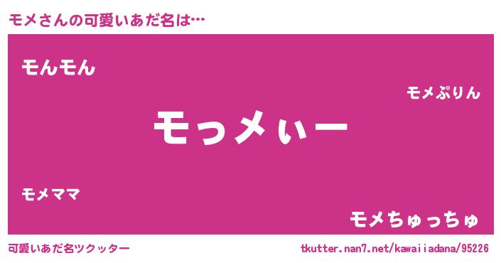 | 女子向けラノベタイトル風あだ名 | 『モメは平凡を望む』『死神モメの再婚』 |