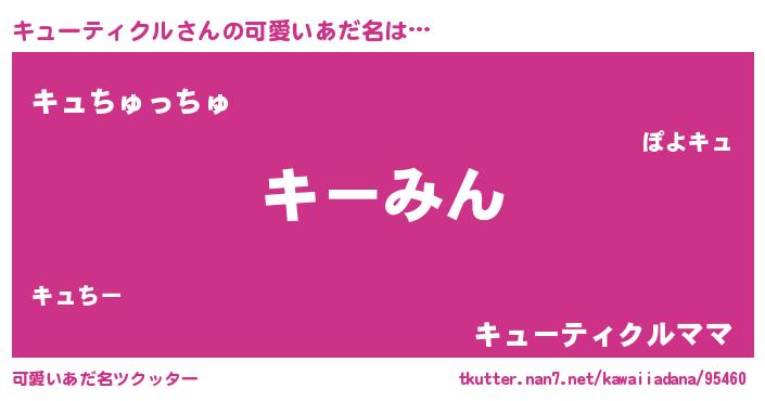 | ヘコむあだ名 | 『キューティクル(苦笑)』『なまこ酢』 |