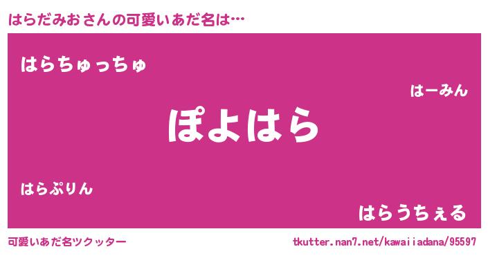 | ヘコむあだ名 | 『はらっちょ』『豆乳』『はらもー』 |