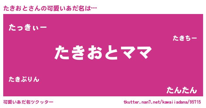 | 意味不明あだ名 | 『永久保存たきおと』『ペロリンたきおと』 |