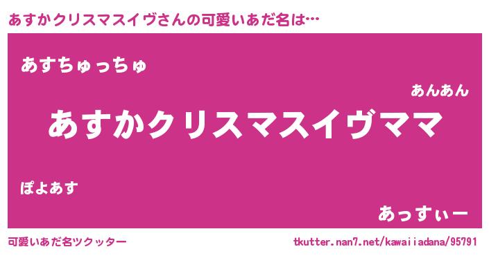 | 意味不明あだ名 | 『永久保存あすかクリスマスイヴ』 |