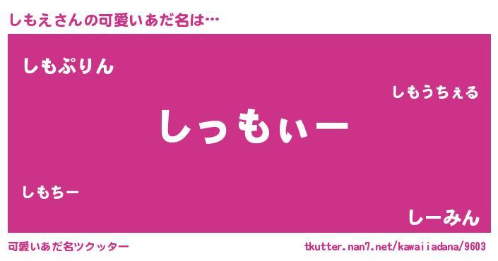 | 意味不明あだ名 | 『とにかく怪しいしもえ』『自称しもえ』 |