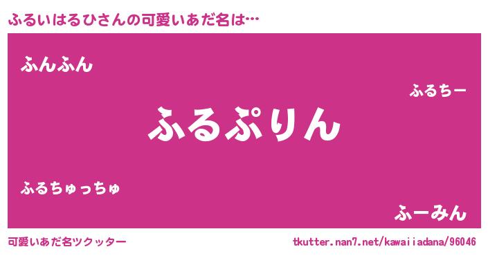 | 男性向けラノベタイトル風あだ名 | 『ふるいはるひ~年齢イコール彼女いない歴の魔法使い~』 |