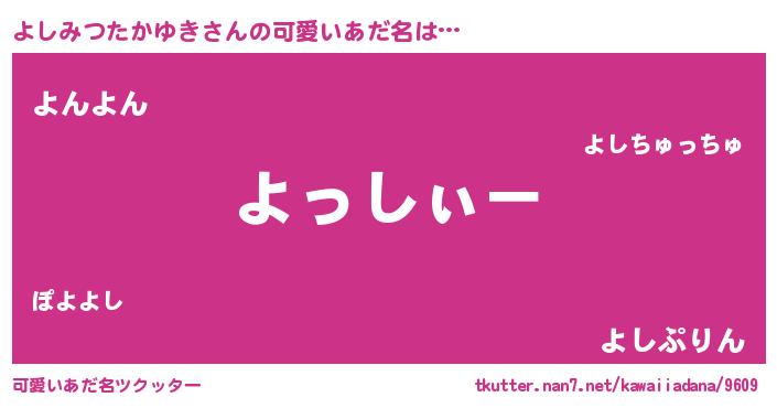 | ポケモン風あだ名 | 『ヒヨシミツタカユキ』『ヨシチュウ』 |