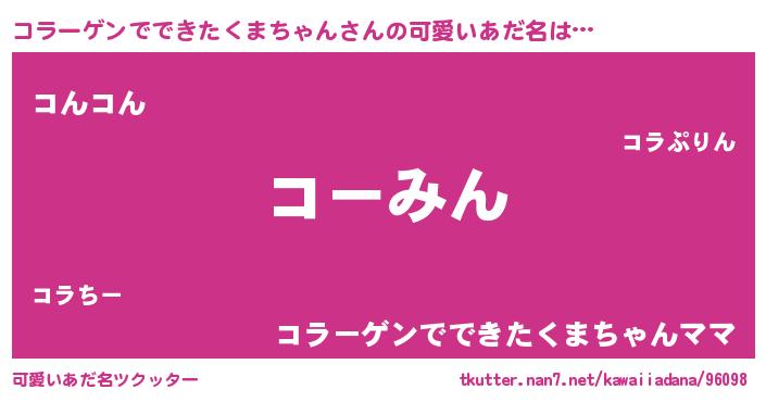 | ヒーロー風カッコイイあだ名 | 『スーパーコラーゲンデデキタクマチャン』 |