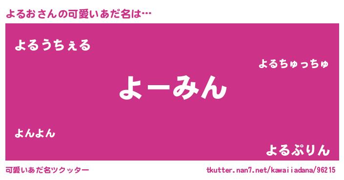 | 男性向けラノベタイトル風あだ名 | 『うちのよるおが世界を掌握している!』 |