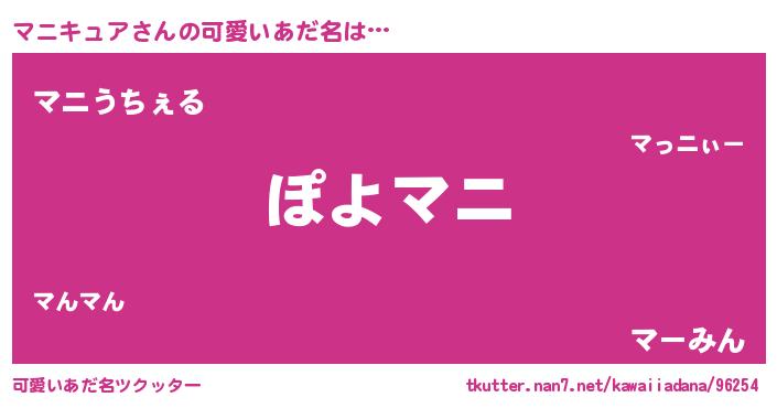 | 女子向けラノベタイトル風あだ名 | 『乙女ゲームの破滅フラグしかない悪役マニキュアに転生してしまった…』 |