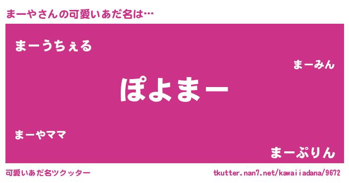 | ヘコむあだ名 | 『まーや(震え声)』『豆乳』『まーを』 |