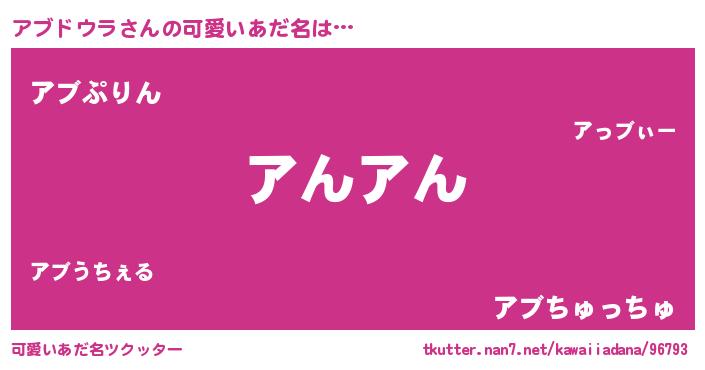 | ヘコむあだ名 | 『アブふぇ~』『アブぷりん』 |