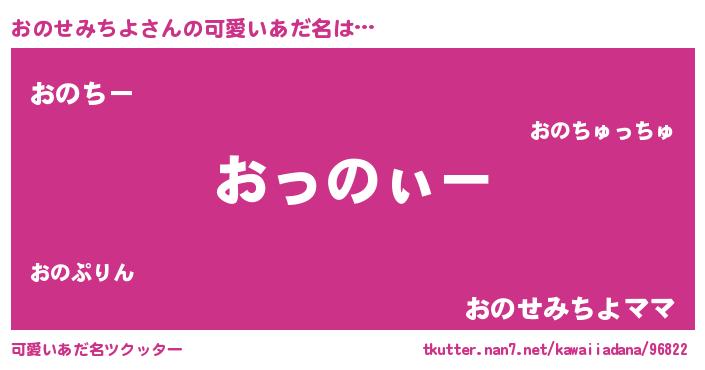 | 男性向けラノベタイトル風あだ名 | 『おのせみちよの嫁は女の子じゃないと思った?』 |