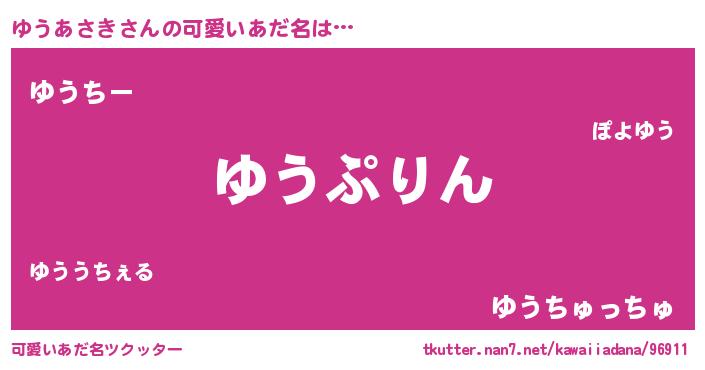 | 男性向けラノベタイトル風あだ名 | 『ゆうあさき~年齢イコール彼女いない歴の魔法使い~』 |