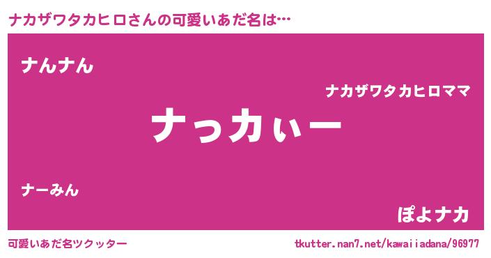 | 男性向けラノベタイトル風あだ名 | 『ナカザワタカヒロの嫁は女の子じゃないと思った?』 |