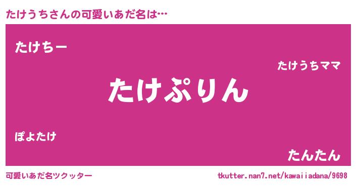 | 恥ずかしいあだ名 | 『たけっちょ』『プリティーたけうち』 |