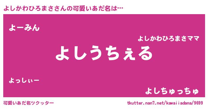 | ヘコむあだ名 | 『よしかわひろまさ(遠い目)』『よしぷりん』 |