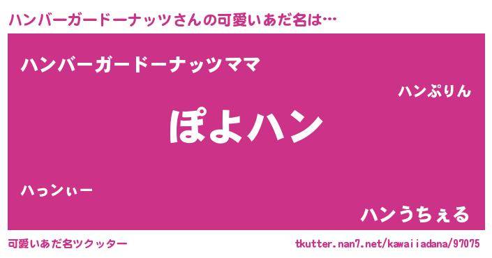 | ヘコむあだ名 | 『ハンバーガードーナッツ(震え声)』『豆乳』 |