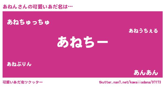 | 意味不明あだ名 | 『あねんフォーエバー』『ペロリンあねん』 |